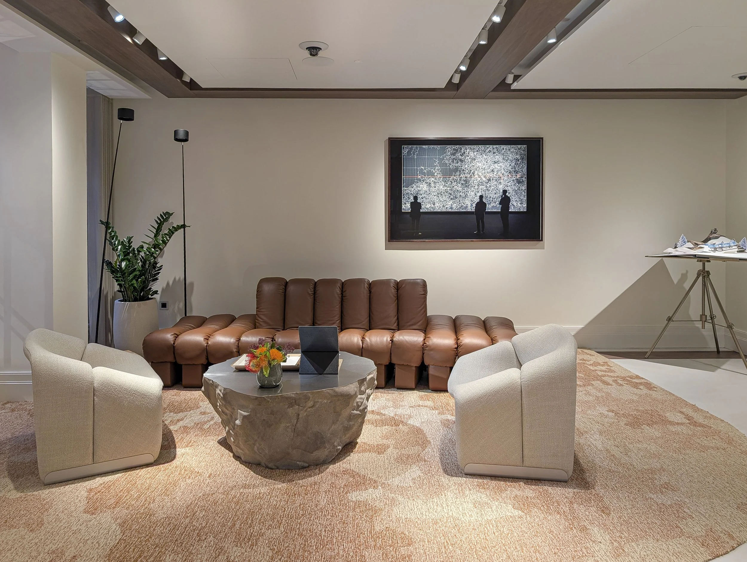 An important aspect of this project was the close collaboration with the in-house design team at Audemars Piguet. Rather than simply executing a predefined plan, we were invited to contribute our expertise in the positioning and arrangement of artworks throughout the space.